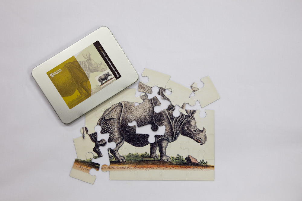 A 20 piece puzzle featuring a watercolour of an elephant or rhinoceros from one of George Edwards beautifully illustrated books on natural history.