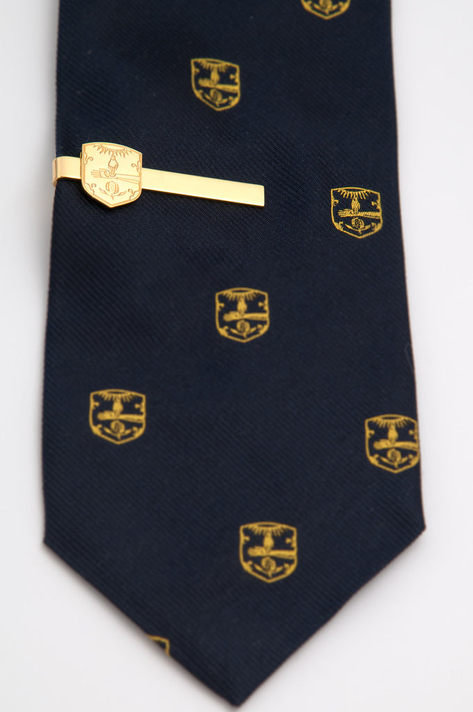 Stylish gold or silver-plated tie clip. Currently available in silver with plain band or with 'Royal College of Physicians' name engraved onto it and in gold with the same engraving.